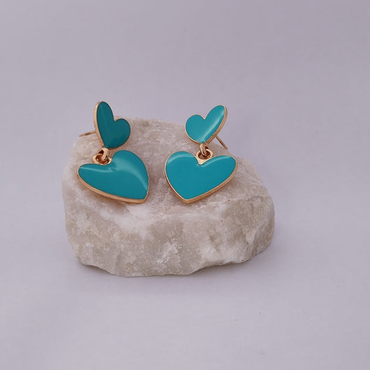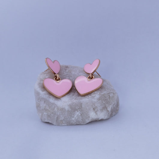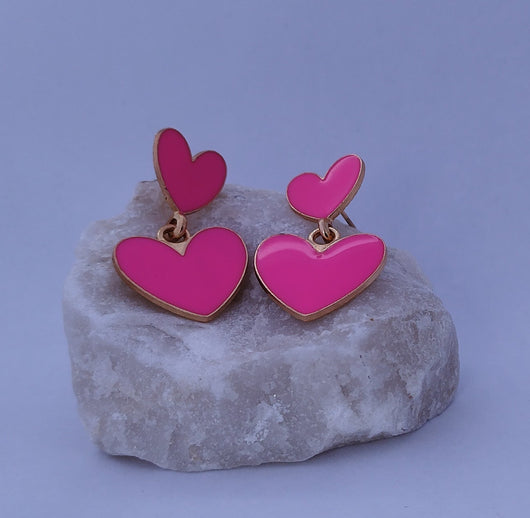 Dale un toque romántico y divertido a tu look con nuestros aretes en forma de doble corazón.